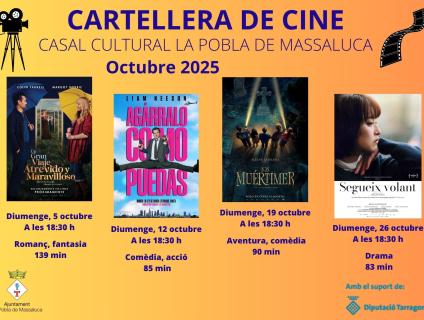 La Diputació de Tarragona ha atorgat a l’ajuntament de la Pobla de Massaluca un ajut econòmic de 7.881,32 €, inclòs en el Programa de Cultura (despesa corrent) Pla #impulsdipta 2025, el qual s'ha destinat al cinema municipal.